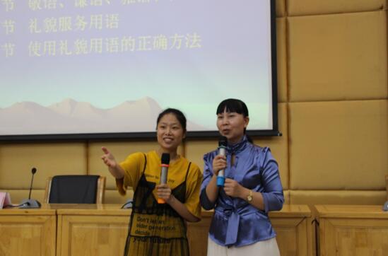 郑尔君老师先从诚信、谦虚、宽容、适度、合作、感恩六个方面为同学们分析了礼仪的基本准则,紧接着又从语言礼节、行为礼节、仪容仪表等方面给同学们阐述了礼仪方面的知识。她告诉同学们,礼仪的关键不在于学到了多少社交技能,而在于你自身的品质能否赢得他人的尊重。讲座期间,郑老师给学生展示了生活与工作情景下的各种不同案例,还不时邀请学生现场互动,现场气氛活跃。