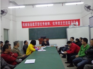 2014-04-24机械制造教学部举行优秀教师、优秀班主任经验交流会 3月27日下午,我校机械制造教学部全体老师在6号楼一楼一体化讨论室举行优秀教师、优秀班主任经验交流会。会议由该教学部主任龙卫军老师主持,贲放、刘远娟等9位“优秀教师”及“优秀班主任”获得者分别介绍了自己的教学、...