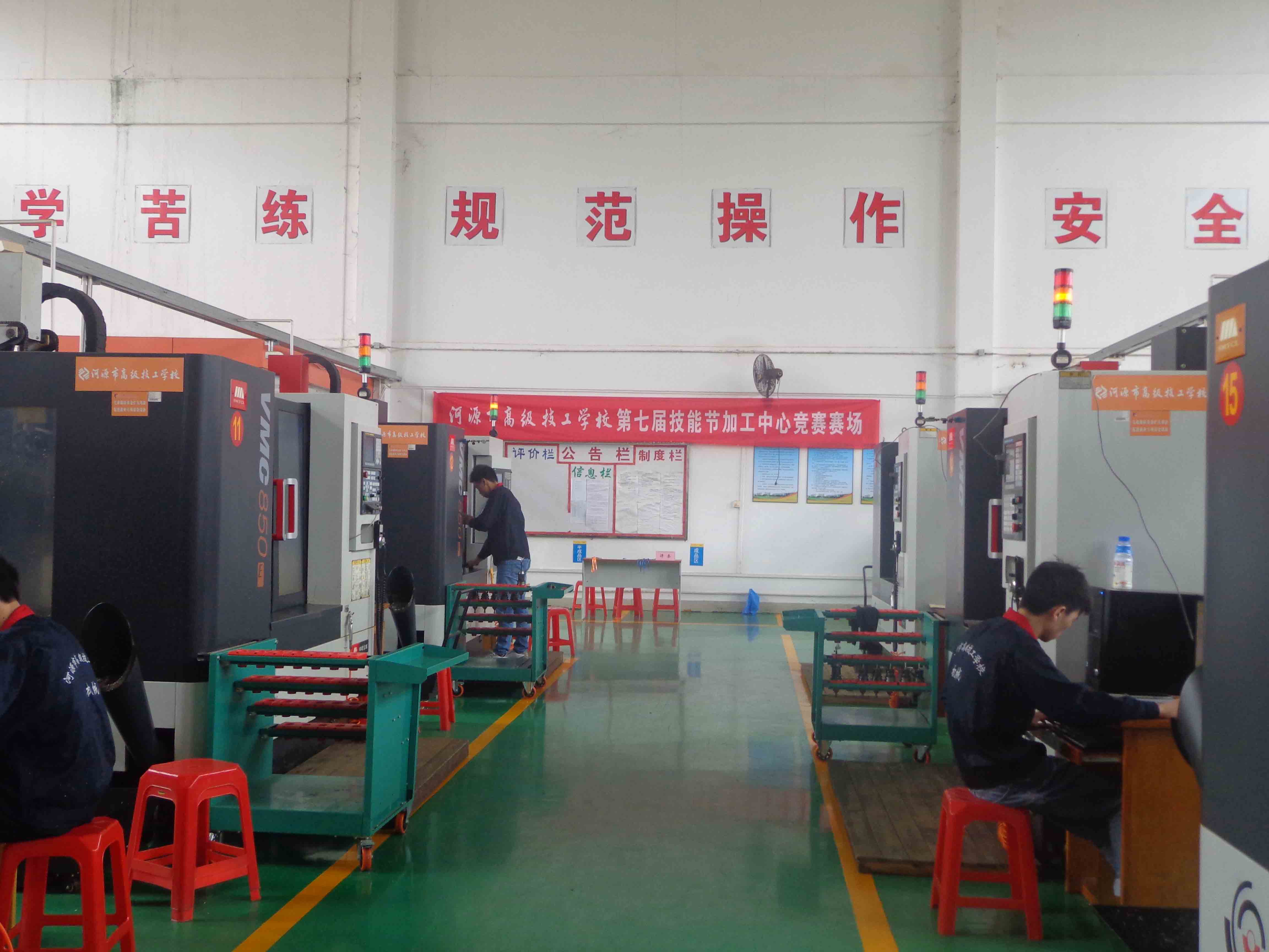 2014-05-225月12日上午,河源市高级技工学校第七届技能节刚开幕不就,机械制造教学部的“加工中心编程与操作”决赛就在六号楼一楼加工中心实训室拉开帷幕。顺利晋级决赛的12名选手摩拳擦掌,跃跃欲试,在加工中心展开巅峰对决。 (图一)加工中心编程与操作决赛现场据了解,决赛以市职...