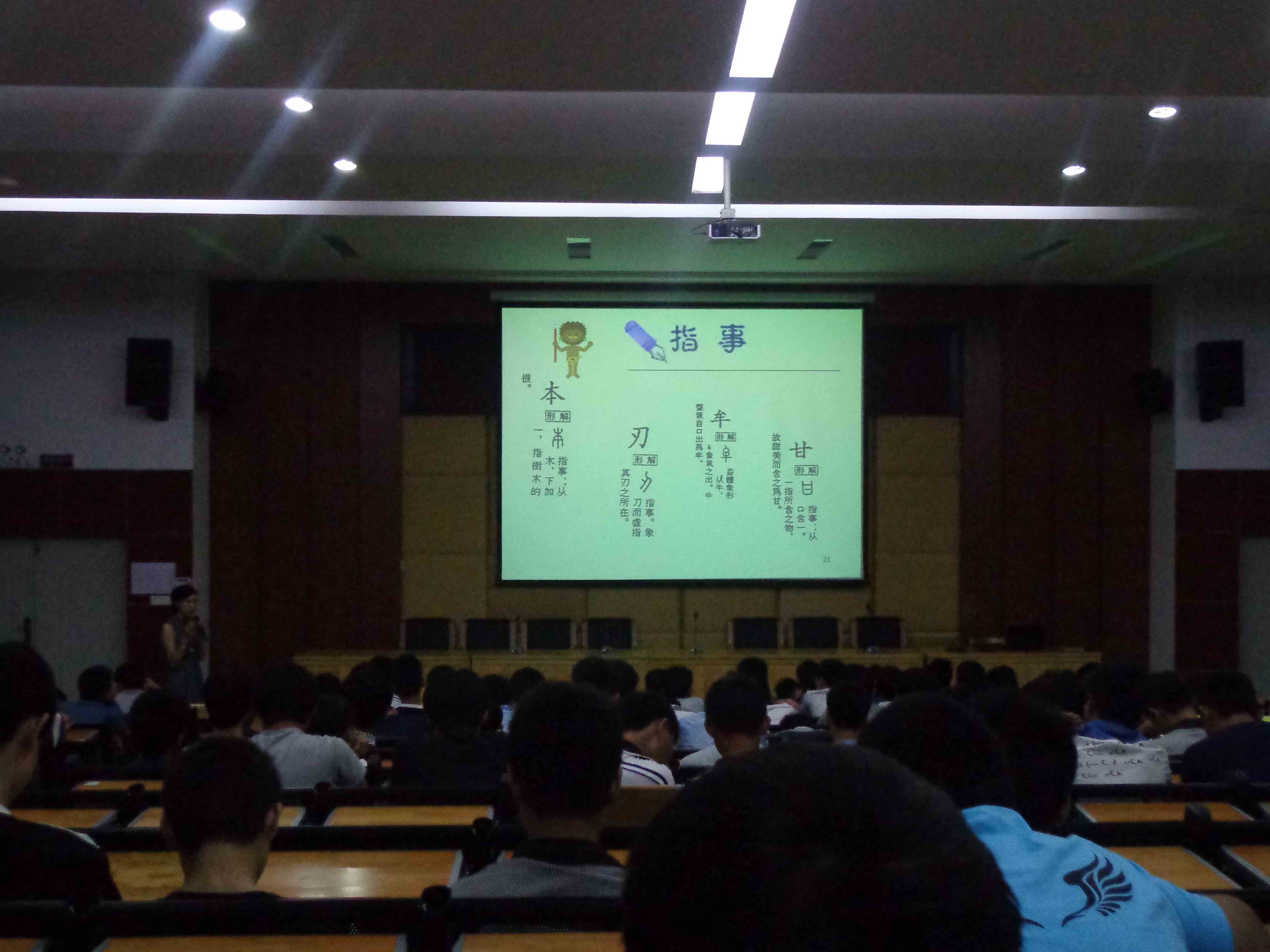 2014-05-21继承中国文化神奇汉字为更好继承中国文化并发扬光大,让广大学子们进一步了解中国汉字的发展源远流长、汉字的用途和知识的无边无际,4月15日晚,我校组织开展了《有趣的汉字》主题讲座。此次讲座由公共教学部叶蓉老师主讲,机械制造教学部13级全体学生聆听了讲座。(图一)讲座现场...