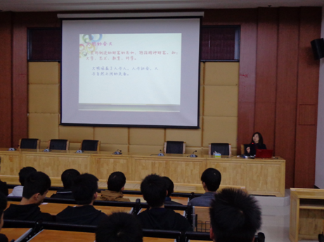 2014-01-08送你一把和谐共处的金钥匙——机械制造教学部举行人文素质大讲堂专题讲座 为加强学生思想道德教育,创建文明校园,12月17日晚上,机械制造教学部在培训楼讲学厅举行“送你一把和谐共处的金钥匙——文明”人文素质大讲堂专题讲座。机械制造教学部贲放老师为该教学部13级学生带...