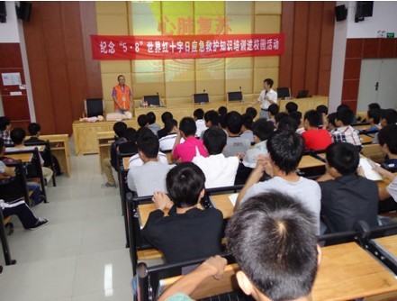 学习应急救护知识 提升应急救助能力——市红十字会到我校普及应急救护知识 为普及急救知识,提高同学们的自救、急救、互救能力,5月8日晚,市红十字会到我校召开应急救护知识讲座。讲座由市红十字会工作人员李胜军医生主讲,团委柳铁非老师主持,机械教学部全体...