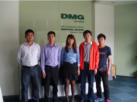 2013-04-23引领高端技术 培养数控精英——我校教师赴东莞参加DMG五轴机床培训 4月15日至19日,我校机械教学部曾祥菹、甘俊通、唐新考三位教师和谢冠锋同学赴DMG广东(东莞)公司参加为期一周的HeidenhainiTNC530数控系统培训。 (图一)我校参训师生与D...