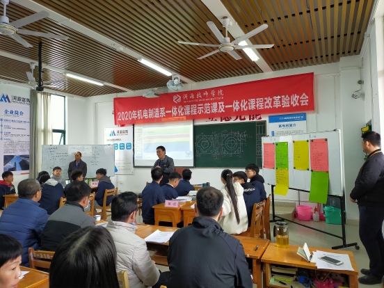 2021-03-16改革示范与成果验收——机电制造系举办一体化课程汇报课 2020年12月20日,在学院举行2020年专业建设研讨会的当天,我系邀请合作企业代表、行业专家、兄弟院校专业教师来到7310,举办了以模具制造专业为代表的一体化课程示范及改革验收会,系部全体教师出席。(图一)机电制造...