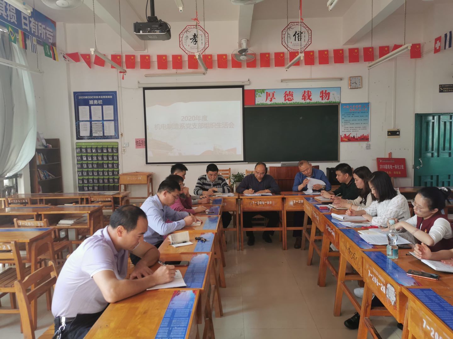 2021-04-29机电制造系党支部召开2020年度基层党组织组织生活会和民主评议党员工作会议2021年3月15日,机电制造系党支部在7号楼二楼党员活动室召开2020年度基层党组织组织生活会和民主评议党员工作会议。全体党员参加,会议由机电制造系党支部书记龙卫军同志主持。 (图一)会议现场会上...