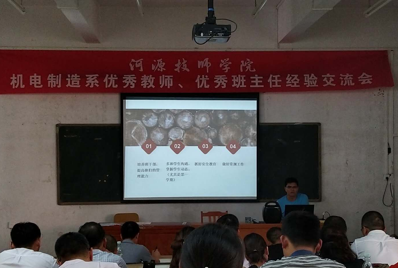 2019-09-21不忘初心相互学习共同进步——机电制造系优秀教师、优秀班主任经验交流会2019年5月27日下午,机电制造系全体教师在8号楼104室举行了一次别开生面的优秀教师、优秀班主任经验交流会。机电制造系2018-2019学年第一学期优秀教师黎阳、黄丹、甘志勇、陈天亮以及优秀班主任唐兴忠、黄石...