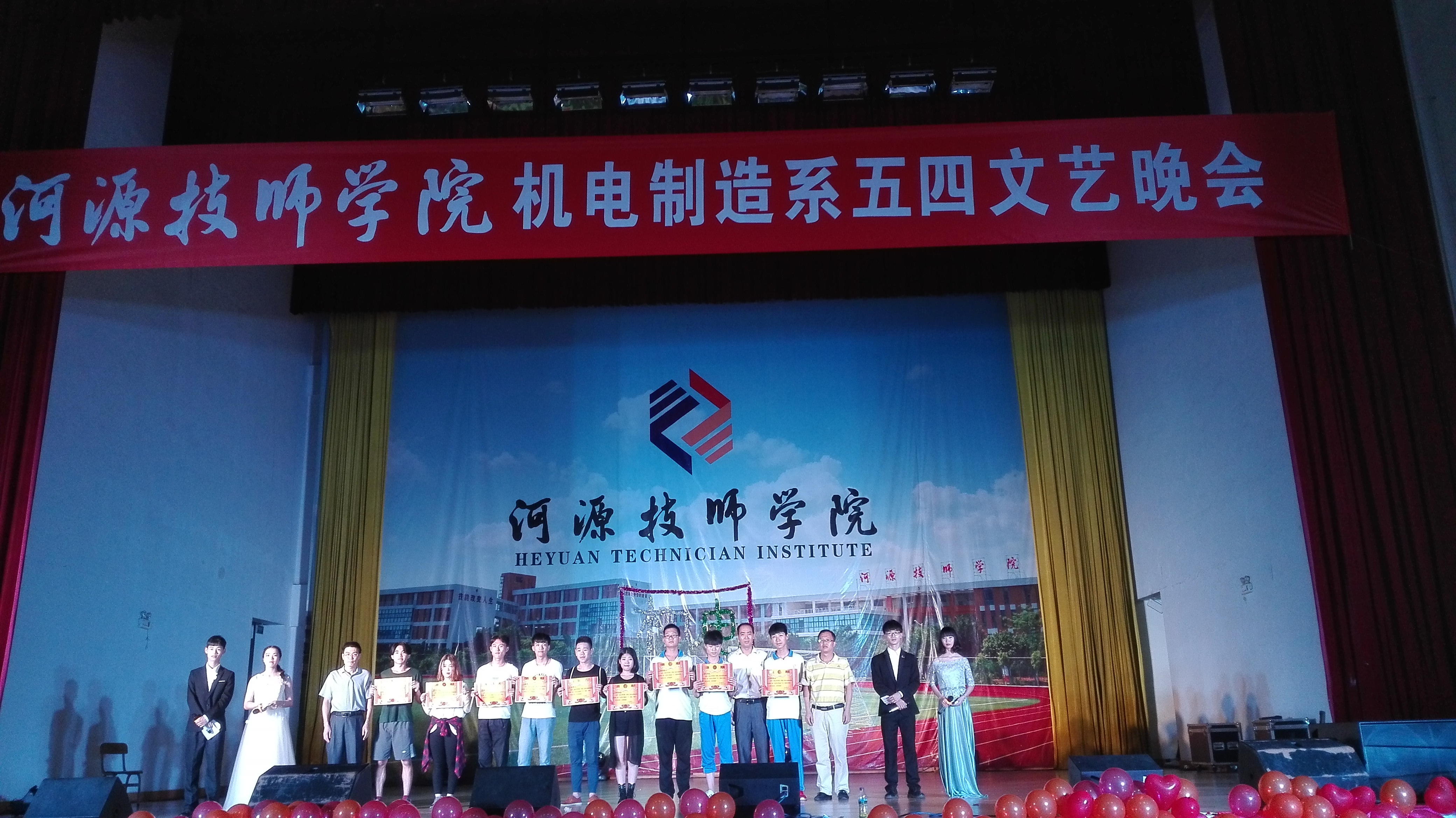 2016年5月9日晚,以“谱青春华章,展技工风采”为主题的机电制造系五四文艺晚会暨“文明班”颁奖在学院体育馆隆重举行。学院团委副书记梁弘宇,机电制造系主任龙卫军、副主任刘会平,徐勇军、机电制造系团总支书记唐新考老师以及各班班主任出席了晚会。