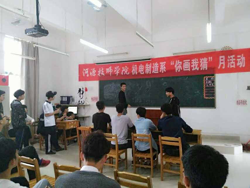 为更加充分的展现机电制造系全体学生积极向上的精神面貌,丰富校园文化,增添生活乐趣,缓解学习压力,丰富学生的课余生活,机电制造系全体同学开展了“你画我猜”的活动,本次活动吸引了机电制造系全体学生的眼球,机电制造系17个班学生参加了本次活动。