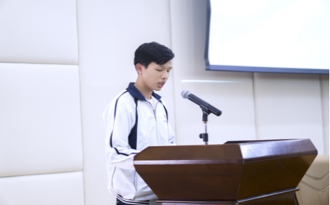 优秀班长代表张家威同学发言,介绍了自己在班级管理中的经验并表达今后要立足本职、勤奋努力、做好班长角色各项工作。