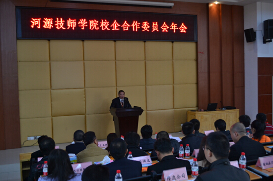 12月26日上午,sunbet申搏官方网站挂牌仪式结束后,我校在培训楼讲学厅举行2014年校企合作委员会年会。西可通信技术(河源)有限公司、广东汉能集团等33家企业代表以及sunbet申搏各专业教师、学生代表参加了年会。学校梁秋生副校长出席并作发言和讲话。