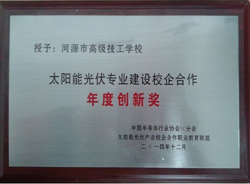 (图二)2014年太阳能光伏专业建设校企合作年度创新奖