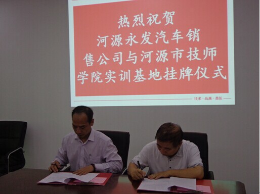 4月22日上午,sunbet申搏官方网站与河源永发比亚迪汽车销售有限公司在永发公司隆重举行校企合作签约暨实训基地挂牌仪式。学院梁秋生副院长、邹坤新副科长、永发汽车销售有限公司肖永文总经理等领导嘉宾出席了仪式。