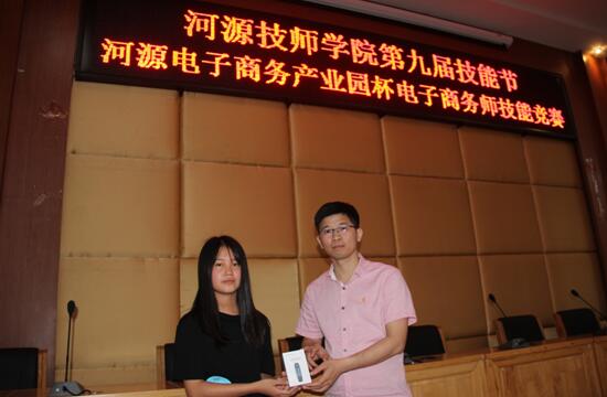 5月19日下午,sunbet申搏信息技术系在实训楼讲学厅举办了“河源电子商务产业园杯”电子商务师技能大赛决赛。河源电子商务产业园总经理温东岸、运营主管黄勇(sunbet申搏12级电子商务专业优秀毕业生)、信息技术系朱少威主任、电子商务专业所有老师及14、15级电子商务专业350名学生参加了这次本次决赛。