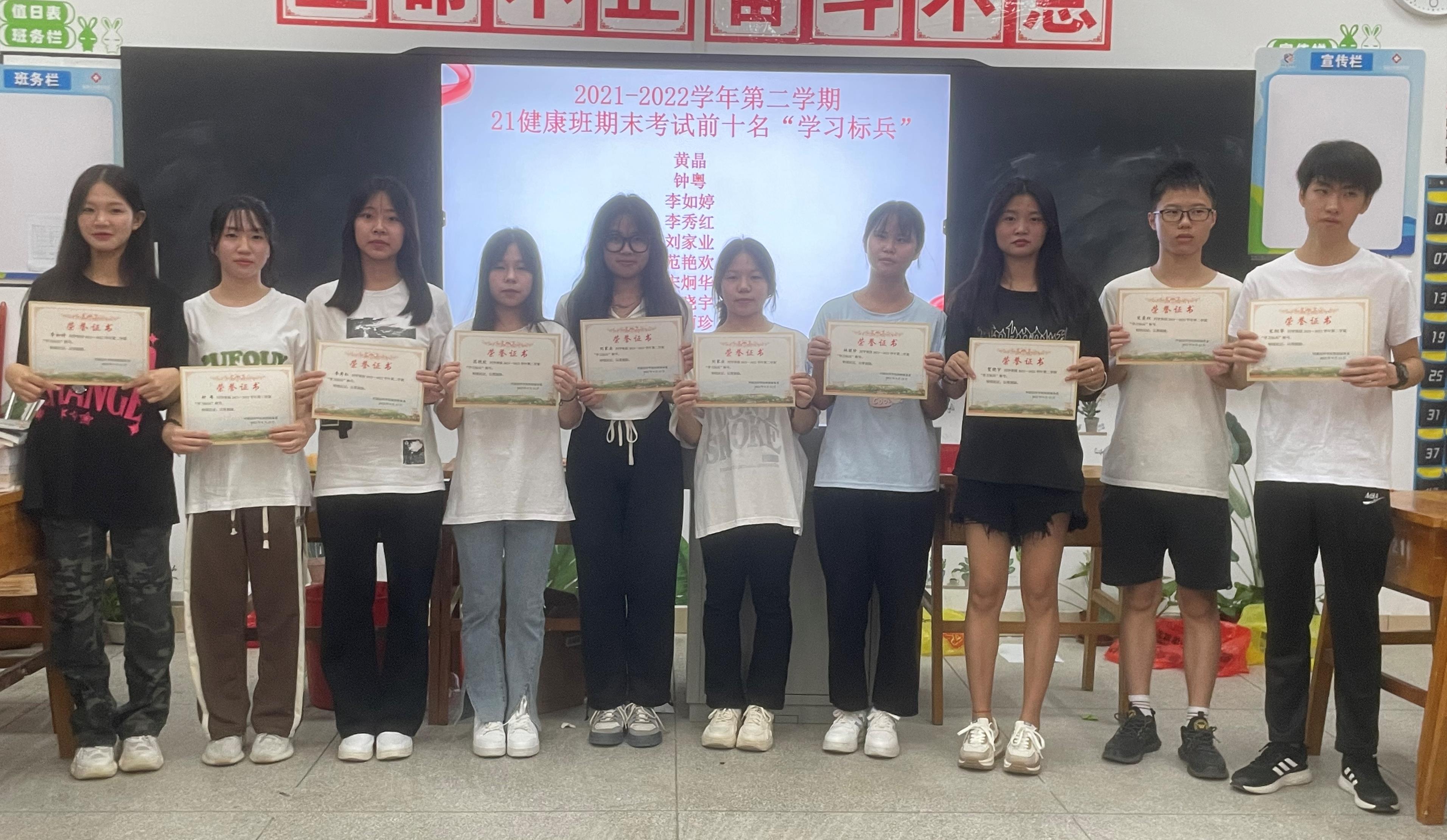 2022-09-14初心如磐砥砺行,久久为功结硕果。开学伊始,21健康服务与管理班召开新学期动员会暨表彰大会,表彰上学期表现优异的学生,为班级全体同学鼓舞士气,激发全体同学的斗志,同学们都以积极向上的精神面貌迎接新学期的到来。表彰班级前十名学生,荣获“学习标兵”荣誉称号。优秀之光,...