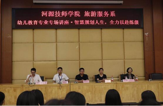 2019-05-27智慧规划人生,全力以赴练级——旅游服务系幼儿教育专业举行就业讲座 为提高幼儿教育专业学生对本专业的认知,让学生更加科学合理地做好职业规划,明确就业方向,2019年5月20日晚,旅游服务系在培训楼讲学厅举行幼儿教育专业“智慧规划人生,全力以赴练级”专场讲座。讲座邀...