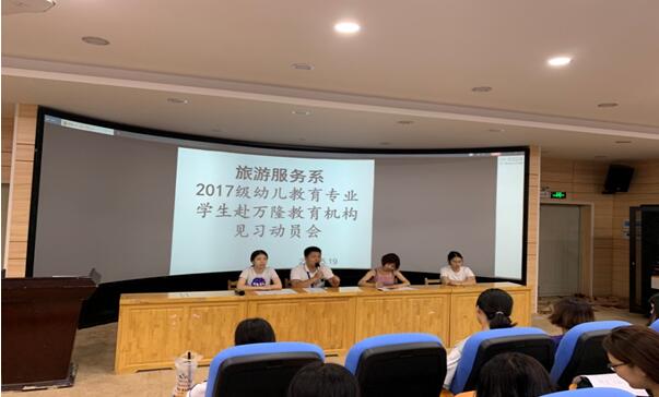 旅游服务系2017级幼儿教育专业学生赴万隆教育机构见习 为巩固学生所学专业知识,提升学生分析问题、解决问题的综合能力,使学生更深入地了解河源本地幼儿园的办学理念及幼儿教师的日常工作流程,旅游服务系组织2017级幼儿教育专业学生前往万隆教育机构开展见习活动。为做好此...