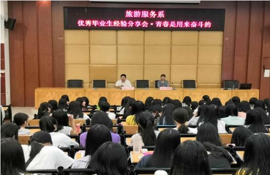 2019-05-07青春是用来奋斗的——旅游服务系举行第一期优秀毕业生经验分享会 为提高学生学习能力,帮助学生树立远大的人生理想,进一步推进旅游服务系教育教学和就业工作,2019年4月25日晚,旅游服务系邀请了2016级幼儿教育专业学生陈小燚返校,在培训楼讲学厅举行了“青春是用来奋斗的...