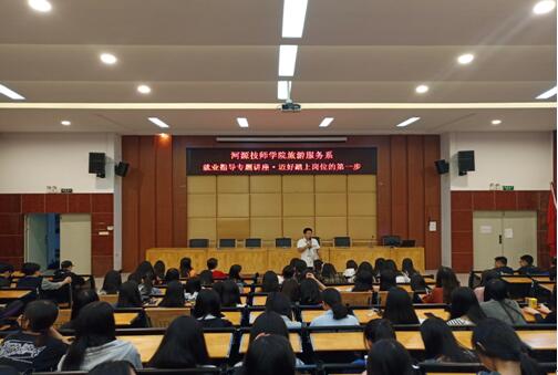 2019-05-08迈好踏上岗位的第一步——旅游服务系举行就业指导讲座 为引导旅游服务系2017级全体学生做好跟岗、顶岗实习的准备,让学生明确就业方向,树立正确的就业观,2019年5月5日晚修期间,旅游服务系在培训楼讲学厅举行“迈好踏上岗位的第一步”就业指导专题讲座。本次讲座由旅游服务...
