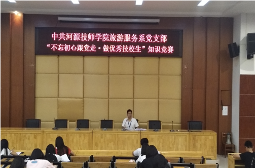 2018-06-20立斗志,扬青春!——中共sunbet申搏官方网站旅游服务系党支部开展知识竞赛活动 为深入学习贯彻党的十九大精神,激励全系党员教师和学生深入学习领会习近平新时代中国特色社会思想。2018年6月13日晚,旅游服务系党支部在培训楼讲学厅举行了“不忘初心跟党走·做新时代优秀青年”党...