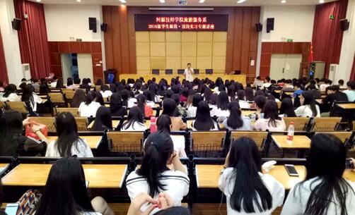 2018-05-09旅游服务系举行实习专题讲座 为引导2016级全体学生做好跟岗、顶岗实习的心理准备和材料准备,让学生明确就业方向,培养正确的就业观,2018年5月7日晚,旅游服务系在培训楼讲学厅举行“实习,你准备好了吗?”专题讲座。本次讲座由陈伟宁主任主讲,2016级全体学生参加了本次讲...