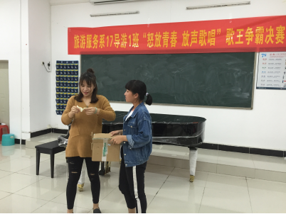 2017-11-08怒放青春,放声歌唱! --2017级导游班举行歌王争霸活动11月6日下午,旅游服务系2017级导游班全体学生在培训楼声乐室举办了歌王争霸决赛。班主任陈丹伶老师、谢丽娟老师出席了本次活动。(图一)评委进行抽奖环节&...