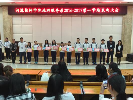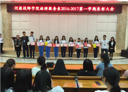 2017-04-10旅游服务系2016-2017学年第一学期优秀学生表彰大会圆满落幕 2017年4月6日晚,旅游服务系在图书馆报告厅召开了2016-2017学年第一学期优秀学生表彰大会。旅游服务系主任谢龙桂,副主任罗丹、陈伟宁,团总支书记曾晓君老师以及旅游服务系全体学生参加这次表彰大会。(图一)优秀...
