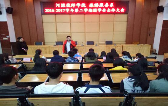 2017-03-17旅游服务召开2016-2017学年第二学期团学会全体大会 2017年3月15日下午,旅游服务系团学会在培训楼讲学厅召开了本学期第一次团学会全体大会。旅游服务系副主任陈伟宁老师、团总支书记曾晓君老师以及团学会全体成员共60余人参加了此次会议。此次会议的主要议程是总结上学期工作...
