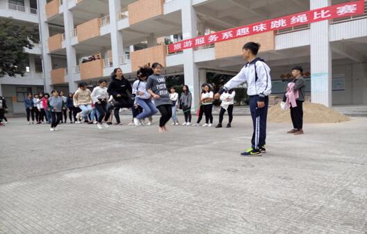 2016-12-08旅游服务系“阳光运动•多彩校园”团日活动之二: 旅游服务系举办趣味跳长绳比赛2016年12月6日下午,旅游服务系团学会在8号楼广场举办了跳长绳比赛。本次比赛为集体项目,团学会每个部门组成一个参赛队参加比赛。在规定的比赛时间内,跳绳次数多者为胜。 (图一...