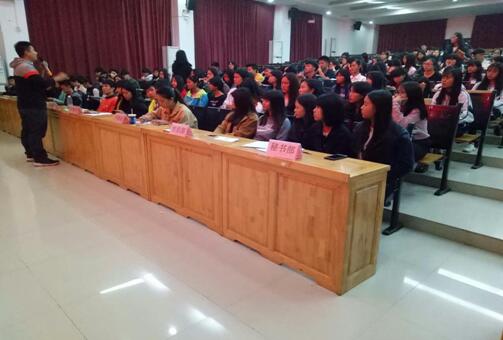 2016-12-12旅游服务系“坚定理想信念·扬中华传统文化”主题团日活动之一: 旅游服务系团学会干部培训大会 2016年12月8日晚,旅游服务系在培训厅召开了团学会学生干部培训会。会议由旅游服务系副主任陈伟宁老师主讲。 (图一)培训会现场 陈伟宁老师首先指出团学会目...