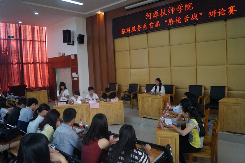 2016-05-17旅游服务系“唇枪舌战”辩论初赛 2016年4月18日-5月13日,为建设我系优良学风,丰富同学们的课外活动,培养大家的思辨能力和语言表达能力,我系举办了首届“唇枪舌战”辩论赛。 初赛持续近一个月,以班级为单位进行淘汰晋级赛。各班同学积...