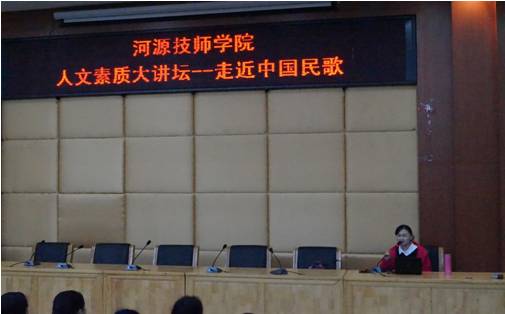 2015-2016学年第二学期“人文素质大讲坛”系列报道之一:走近中国民歌 2016年3月21日晚,sunbet申搏2015-2016学年第二学期“人文素质大讲坛”系列讲座第一期——走近中国民歌在sunbet申搏讲学厅举行。本次讲座由旅游服务系李艳老师主讲,旅游服务系2015级全体学生聆听了讲座。(图一)李...