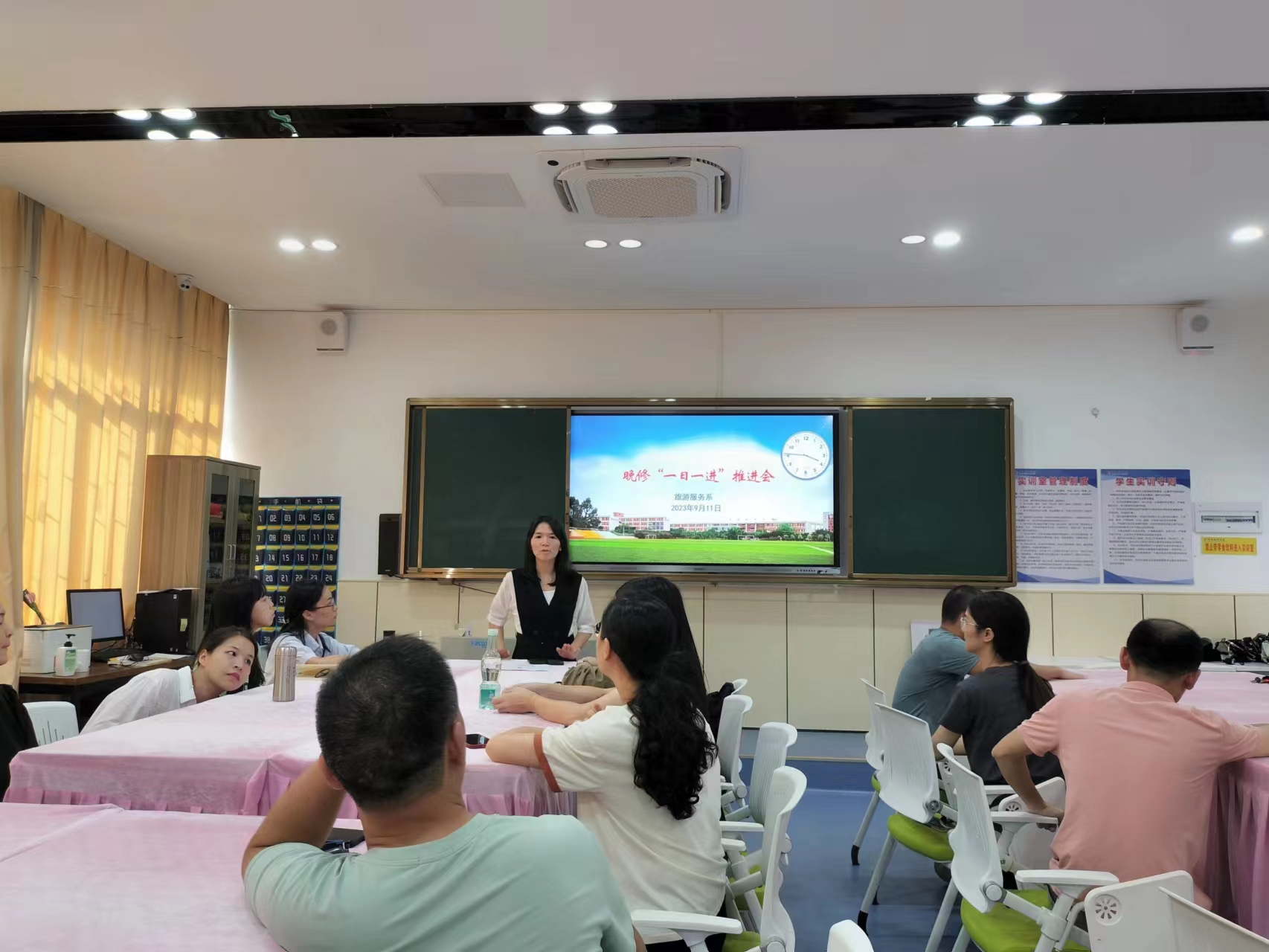 2023-09-19为确保新学期教育教学工作的有效开展,促进全系各专业学生全面提升,增强晚修学习效果,9月11日下午旅游服务系在母婴实训室召开晚修“一日一进”推进会,参加本次会议的有旅游服务系主任曾晓君、副主任罗丹、团总支书记廖媚及全体班主任和晚修值班老师。会议伊始,曾晓君主任提出全体...