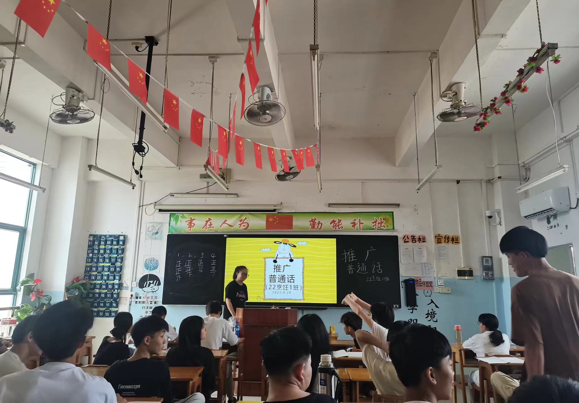 2023-09-21为弘扬中华优秀文化传统,全面深入宣传国家语言文字规范政策,切实提高师生语言文字规范意识和用语用字规范化水平,22烹饪1班于2023年9月20日举办了推广普通话的活动。本次“推普”活动以“推广普通话,客家文化一起行”为主题,推广和规范使用国家通用语言文字,同时与河源的客家...