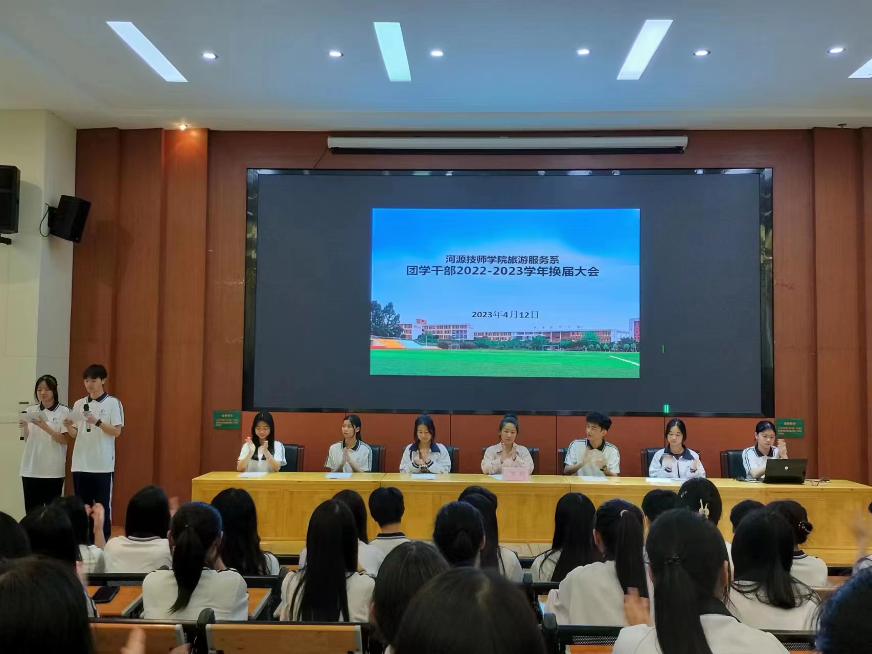 2023-05-232023年4月12日,sunbet申搏官方网站旅游服务系在讲学厅召开学生干部换届大会,出席本次活动的有团总支书记廖媚老师以及团学会学生干部、成员等共100余人。(图1大会现场) 活动伊始,先由团总支书记廖媚老师宣读2021级学生干部表彰名单和2022届学生干部...