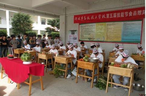 2012-05-30食品雕刻大PK,谁是技工“神雕手”? 5月29日上午,第五届技能节食品雕刻大赛在八号楼一楼举行。经过4个多小时的激烈角逐,2011级烹饪班王巧龙同学在17名参赛选手中脱颖而出,勇夺桂冠。 (图一)比赛引来众多老师和学生...