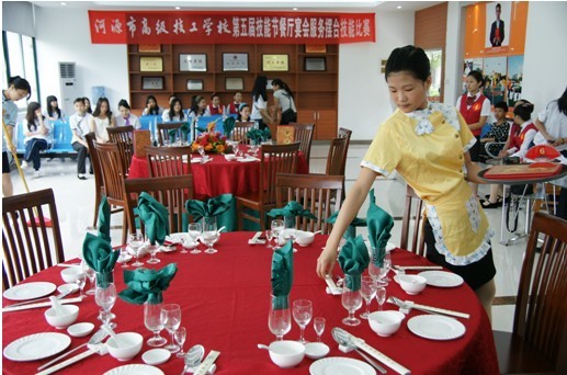 我校举行中餐宴会摆台比赛 5月29日上午,我校旅游服装教学部在七号楼一楼举行第五届技能节中餐宴会摆台项目竞赛。 (图一)比赛现场 12位选手在68名初赛选手中脱颖而出,成功晋级决赛。在决赛现场,只见他们一个个身穿不同风格的餐厅工作服,左手...