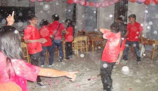(图二)同学们在游戏“打面粉仗”中玩得非常尽兴
