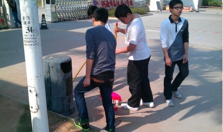(图一)工具还没到齐,班长欧阳嘉豪、郭怡、谭季媚等三名同学便迫不及待地先劳动起来