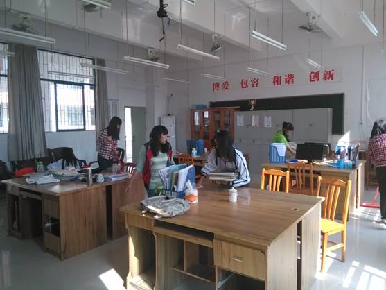 3月24日下午,该班全体留宿同学,在客房实训室A103开展清理垃圾,整理卫生,以营造美好学习工作环境的志愿服务活动。本次活动共有10名留宿的同学参与,由班主任带头,班干部参与,留宿学生积极响应。进过2个小时的奋斗,客房实训室环境大为改善,为后面的客房实训课程提供了保障。