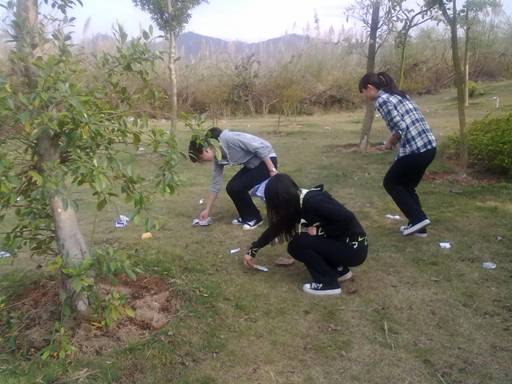 3月15、16日下午,该班部分成员,在学校饭堂后山进行清理生活垃圾,美化学校环境志愿服务活动,为美化校园环境,宣传环保贡献一份力量。