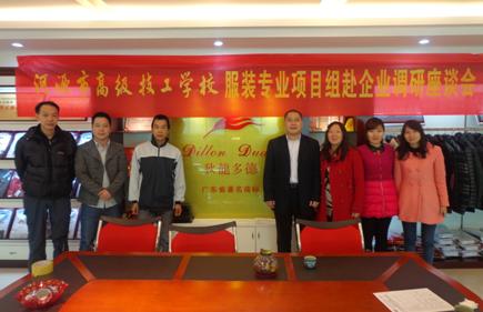 在河源市广东英纯服饰有限公司,4位专业教师与公司姜副总经理就服装专业的改革发展、专业设置和人才培养模式等方面进行研讨。教师们纷纷表示此次调研活动不仅提高了自身的专业水平,也为今后推动服装专业校企合作导航引路。