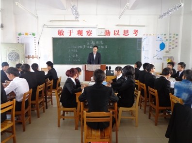 活动中,各教学部均选出一名班主任代表召开主题班会,教学部其他教师则前往旁听观摩。作为汽修教学部的班主任代表,艾文军老师主持召开了13级汽车技术服务与营销班班会。学生们衣着正装,精神抖擞,让人耳目一新。课堂上,艾文军老师通过创设情景的方法引入班会主题,并结合故事启发、游戏活动、分组讨论等方式步步深入,使学生体会到懂文明、知礼貌的重要性。而13级烹饪1班班主任谢志海老师则主要通过案例分析、情景模拟等手段,让学生在讨论、模拟中得到启发,从而做到自觉践行文明礼仪规范。