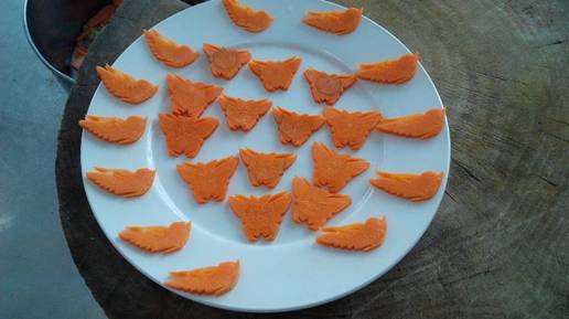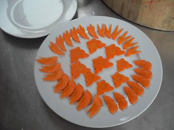 据了解,此次刀工综合技能是首次列入学校技能节竞赛项目,竞赛内容是最能显示专业基本功的两个小项:银针丝和料头花的切制。参赛者用精湛的刀工将胡萝卜切成各种栩栩如生的动物,如树叶、蝴蝶、兔子、小鸟等等,而银针丝细能穿针,吸引众多参观者并让参观者体验一番“刀尖艺术上”的视觉盛宴。