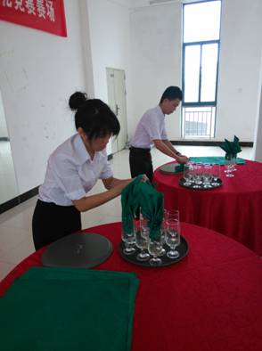 5月13日下午,第七届技能节餐巾折花比赛在实训楼B栋402室如期进行,来自2个年级共30名选手参加本次竞赛最后的角逐。一张张平凡无奇的餐巾在这些学生灵巧的手中,变成了心心相印、蝴蝶花、四叶玫瑰等花样,让在场的评委、学生赞叹不已。