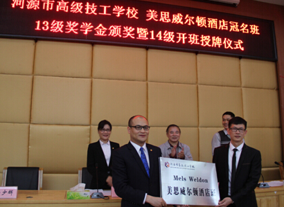 授牌仪式结束后,万绿湖美思威尔顿酒店为我校2013级冠名班优秀学生颁发奖学金,企业捐资助学,校企携手共进。
