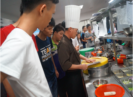 (图八)烹饪专业学生观摩希尔顿酒店中餐部厨房