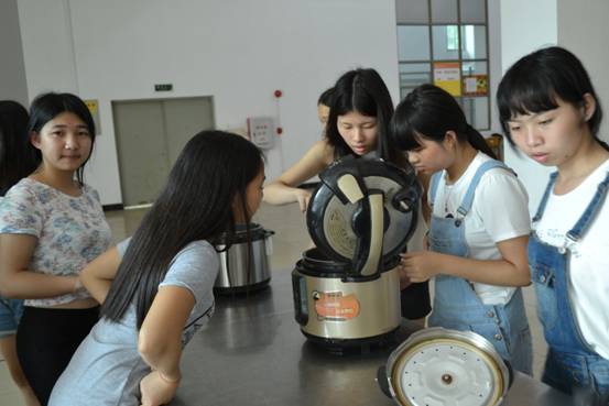 (图四女生们在关心做紫菜卷的饭团香不香)