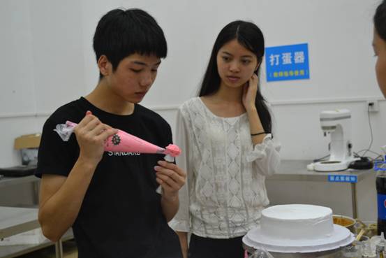 (图三烹饪班的学生帮我们的毕业蛋糕裱花)