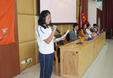 优秀学生代表陈惠菊同学发言,她表示自己在理论知识、专业技能和学生工作中不断取得新进步,离不开系部团学会工作的的磨练,离不开系部老师的谆谆教导。她非常感谢学校给予的平台与关怀,同时她鼓励学弟、学妹们在接下来的校园生活要刻苦学习、积极参与校园活动,为自己的青春写下绚烂的篇章。
