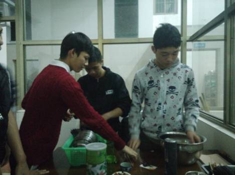 为了迎接冬至,传递欢乐与温暖,15烹饪2班于2015.12.22日晚在饭堂一楼组织了“师生齐聚一堂,迎接冬至”的活动。有同学在活动后表示:从购置原料到准备原料,以及搞卫生的过程中虽然比较麻烦、辛苦,但是看到老师和同学们满足的表情,心里很快乐,同时在买原料的过程中增长了知识,也对于策划活动方面有了很大的收获。
